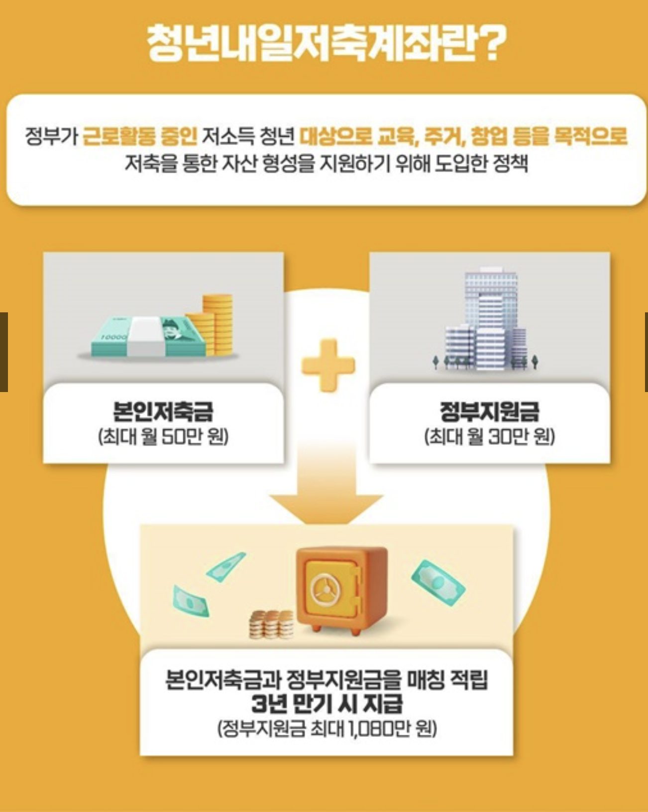 단순한 저축을 넘어, 일정 기간 근로와 교육 이수를 병행해야 한다는 특징이 있으며, 이를 충족할 경우 3년 후에는 상당한 목돈을 마련할 수 있습니다.