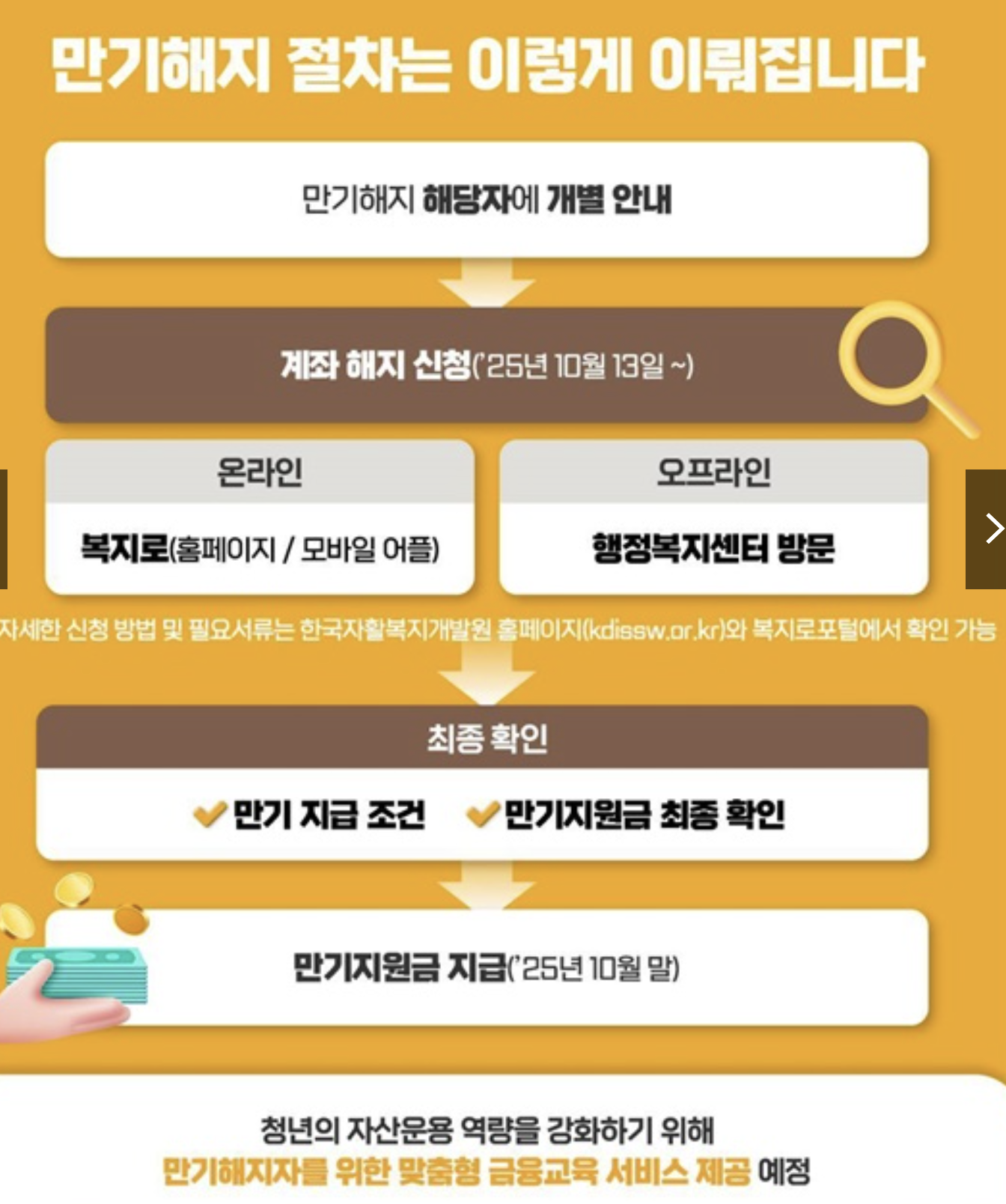 따라서 신청 후 단순히 저축만 하는 것이 아니라 근로, 교육, 서류 제출 등 사후 관리 요건을 지속적으로 지켜야 합니다.