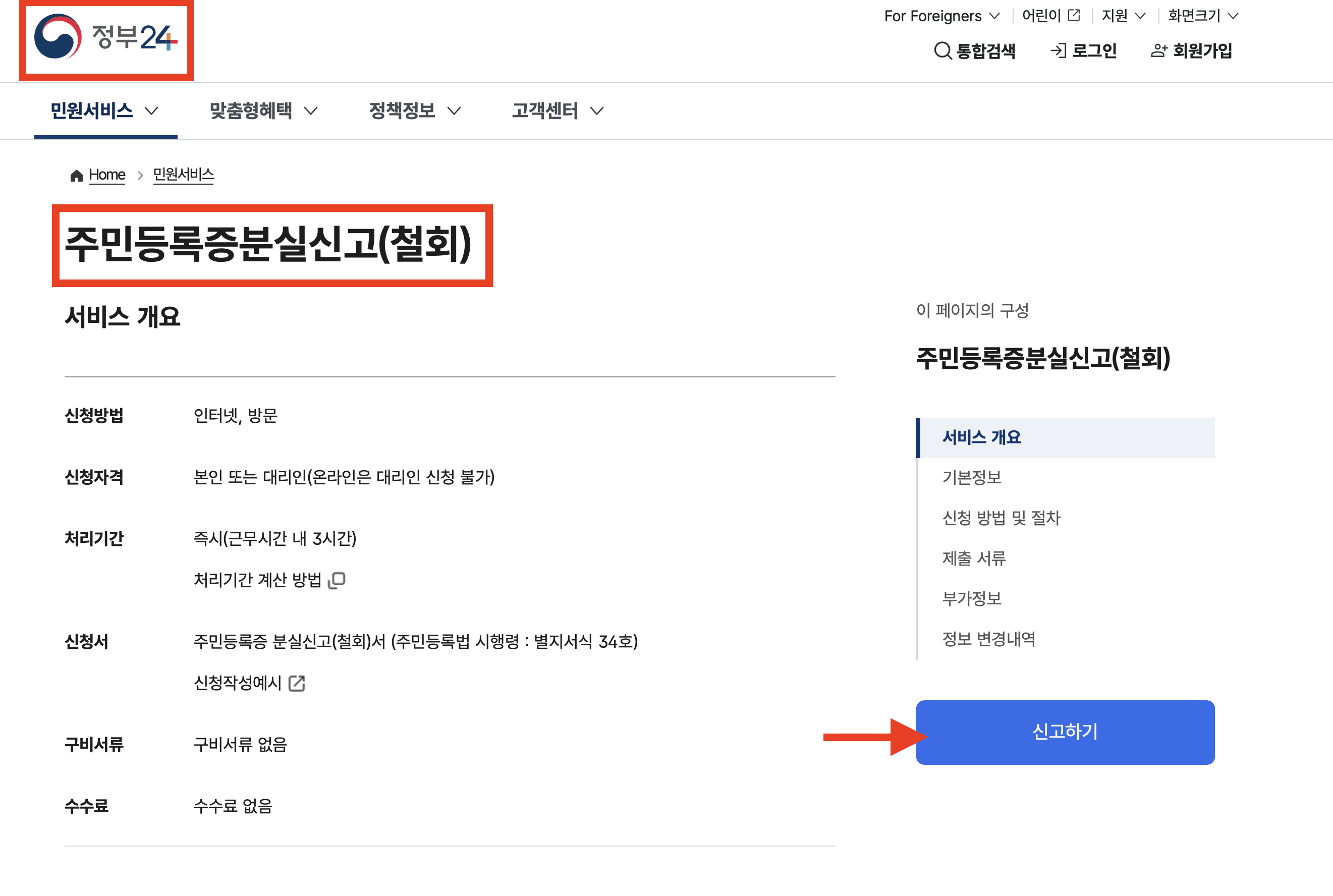 온라인 신고는 본인이 직접 진행해야 하며, 신고 접수와 동시에 기존 주민등록증은 더 이상 사용할 수 없습니다.