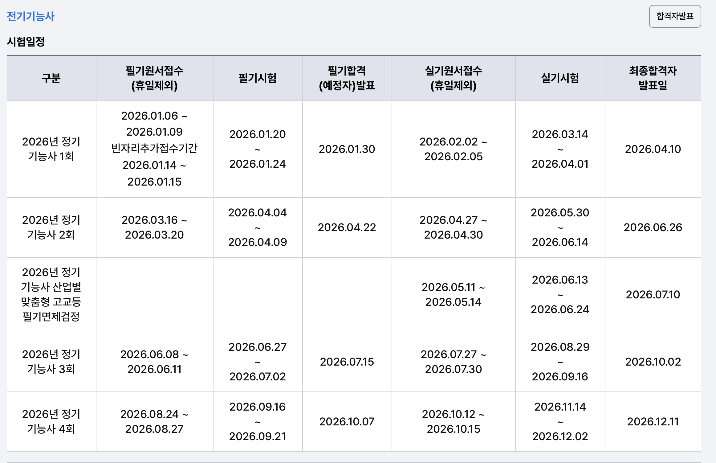 일정은 한국산업인력공단(Q-Net)에서 공식 공고되는 일정에 따라 변동될 수 있습니다. 접수 시작일에는 트래픽이 몰릴 수 있으므로 사전에 Q-Net 회원가입과 본인인증을 미리 해두는 것이 좋습니다.