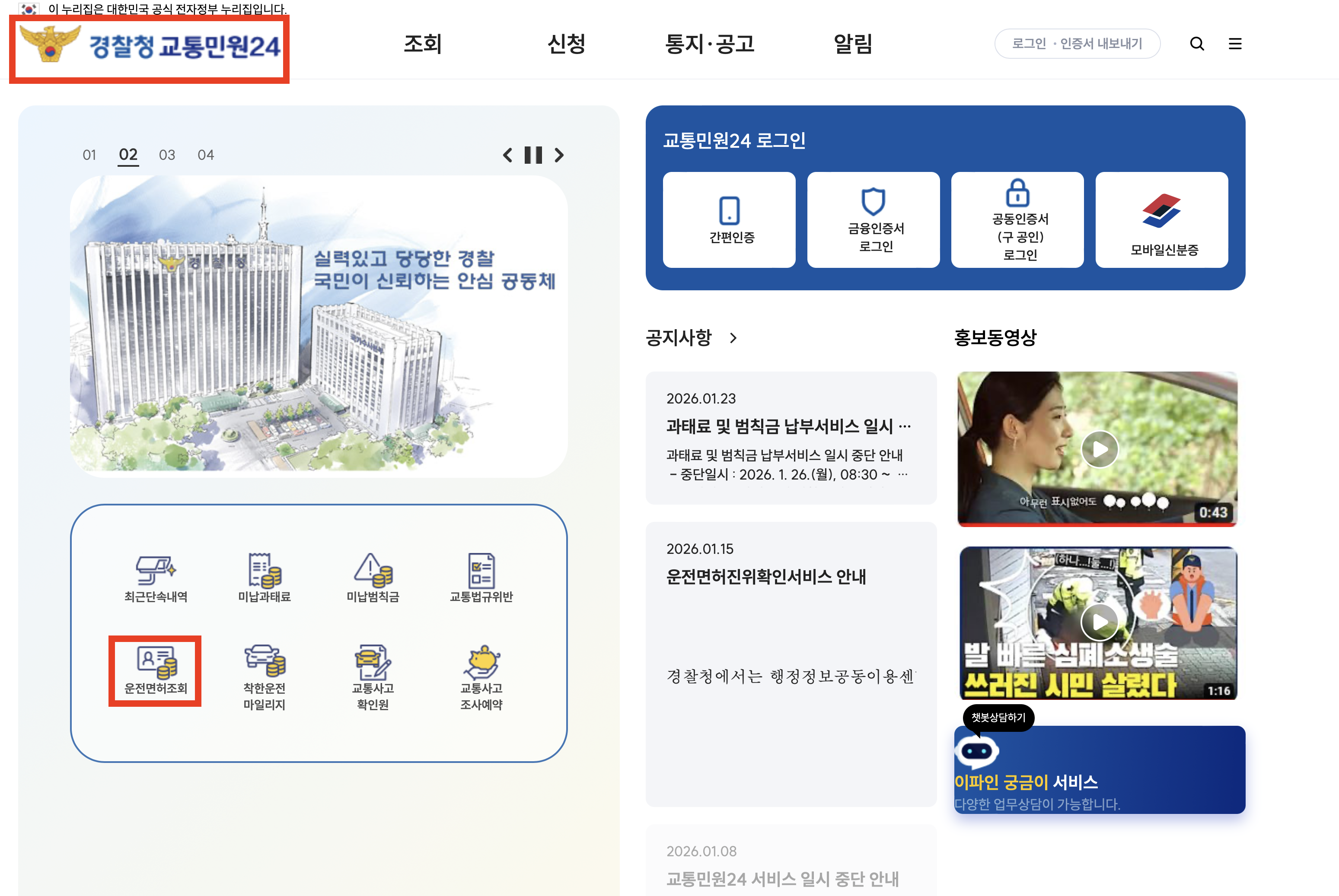 * 경찰청 교통민원24(이파인) 사이트에 접속